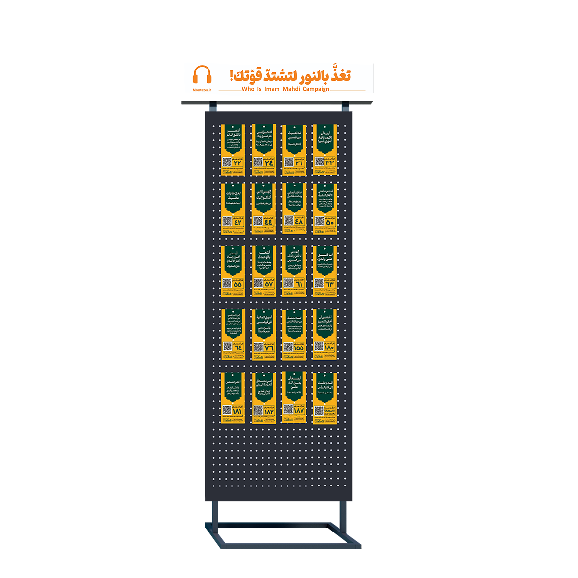 این استند به معرفی ۲۰ دعای مهم و محفاظتی در صحیفه جامعه سجادیه که در آخرالزمان به قدرت گیری روحی و استقامت انسانها کمک میکنند، میپردازد. سرفصل مشکلات در تمام این دعاها با عباراتی بسیار ساده و قابل فهم برای عموم انتخاب شده است؛ طوری که هر مخاطب به محض مطالعه تیترها مسئله و یا موضوع اضطراب درونی خود را پیدا کرده و با اسکن qrکد به دعای مربوط به همان مشکل دسترسی مییابد.