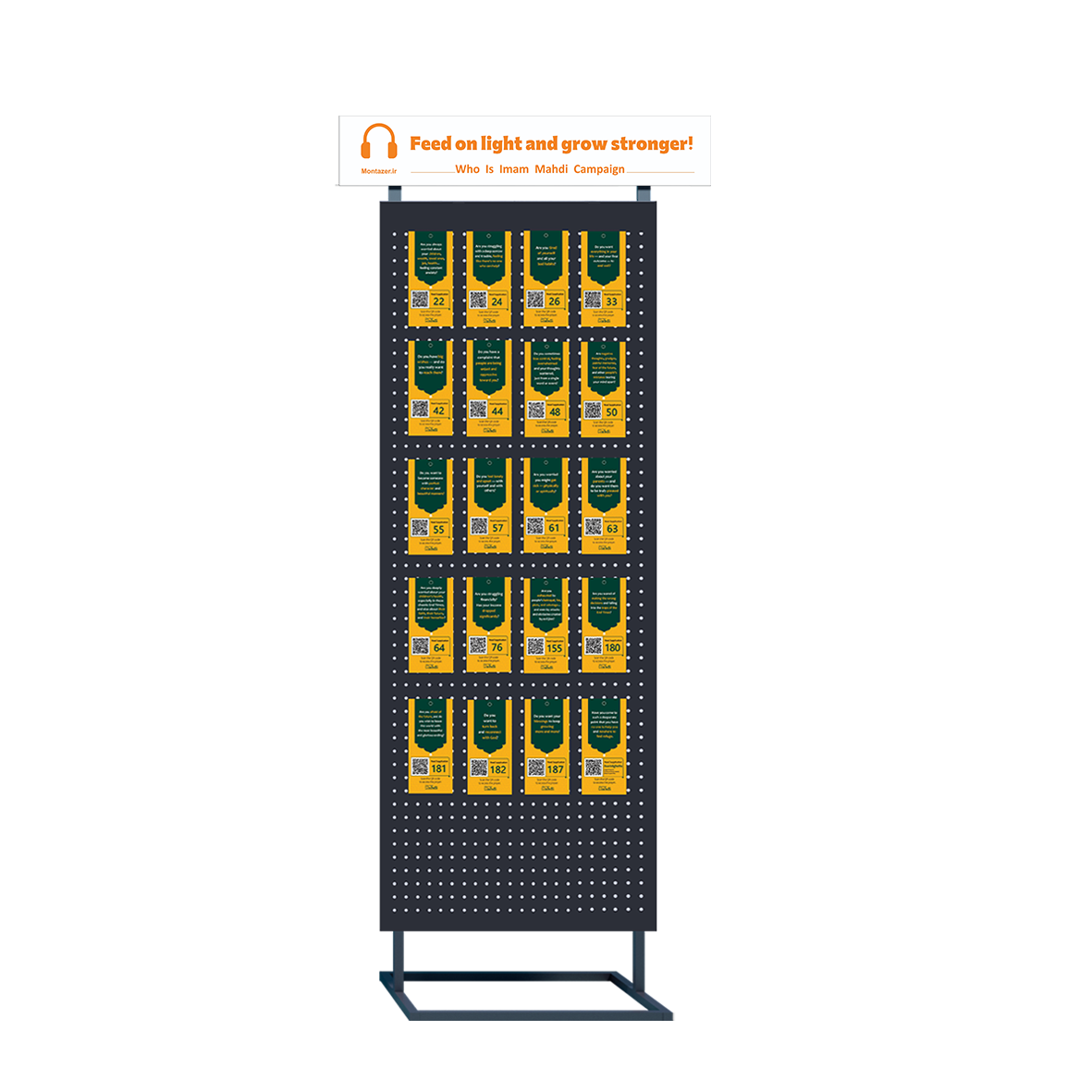 این استند به معرفی ۲۰ دعای مهم و محفاظتی در صحیفه جامعه سجادیه که در آخرالزمان به قدرت گیری روحی و استقامت انسانها کمک میکنند، میپردازد. سرفصل مشکلات در تمام این دعاها با عباراتی بسیار ساده و قابل فهم برای عموم انتخاب شده است؛ طوری که هر مخاطب به محض مطالعه تیترها مسئله و یا موضوع اضطراب درونی خود را پیدا کرده و با اسکن qrکد به دعای مربوط به همان مشکل دسترسی مییابد.