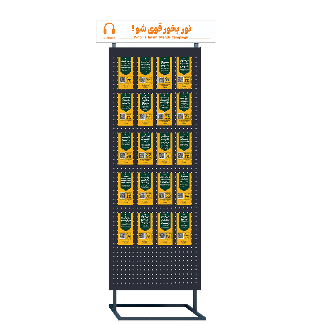 این استند به معرفی ۲۰ دعای مهم و محفاظتی در صحیفه جامعه سجادیه که در آخرالزمان به قدرت گیری روحی و استقامت انسانها کمک میکنند، میپردازد. سرفصل مشکلات در تمام این دعاها با عباراتی بسیار ساده و قابل فهم برای عموم انتخاب شده است؛ طوری که هر مخاطب به محض مطالعه تیترها مسئله و یا موضوع اضطراب درونی خود را پیدا کرده و با اسکن qrکد به دعای مربوط به همان مشکل دسترسی مییابد.